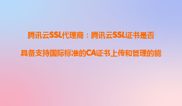 腾讯云SSL代理商:腾讯云SSL证书是否具备支持国际标准的CA证书上传和管理的能力?