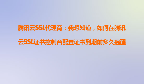 湖南腾讯云SSL代理商:我想知道,如何在腾讯云SSL证书控制台配置证书到期前多久提醒的告警通知?