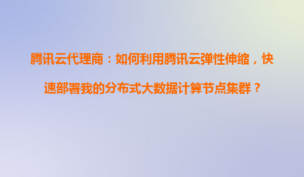 湖南腾讯云代理商:如何利用腾讯云弹性伸缩,快速部署我的分布式大数据计算节点集群?