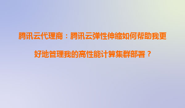 湖南腾讯云代理商:腾讯云弹性伸缩如何帮助我更好地管理我的高性能计算集群部署?