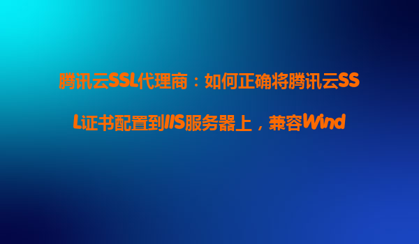 湖南腾讯云SSL代理商:如何正确将腾讯云SSL证书配置到IIS服务器上,兼容Windows环境?