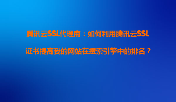 腾讯云SSL代理商:如何利用腾讯云SSL证书提高我的网站在搜索引擎中的排名?