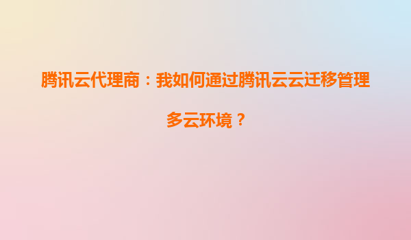 腾讯云代理商:我如何通过腾讯云云迁移管理多云环境?
