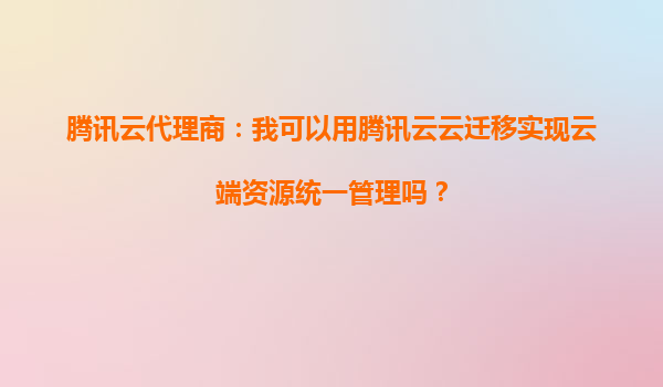 腾讯云代理商:我可以用腾讯云云迁移实现云端资源统一管理吗?