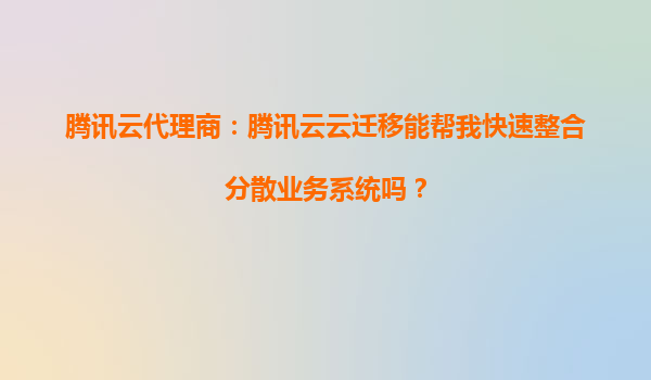 腾讯云代理商:腾讯云云迁移能帮我快速整合分散业务系统吗?