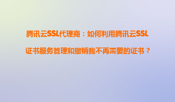 腾讯云SSL代理商:如何利用腾讯云SSL证书服务管理和撤销我不再需要的证书?