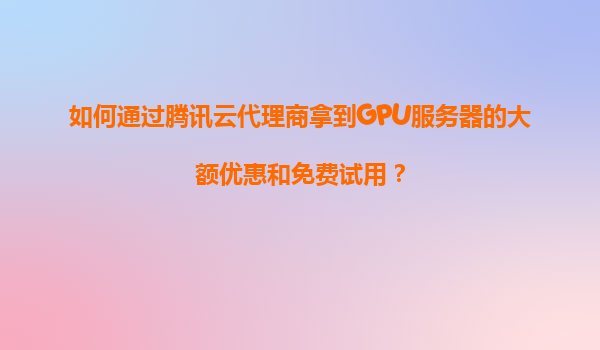 如何通过腾讯云代理商拿到GPU服务器的大额优惠和免费试用?