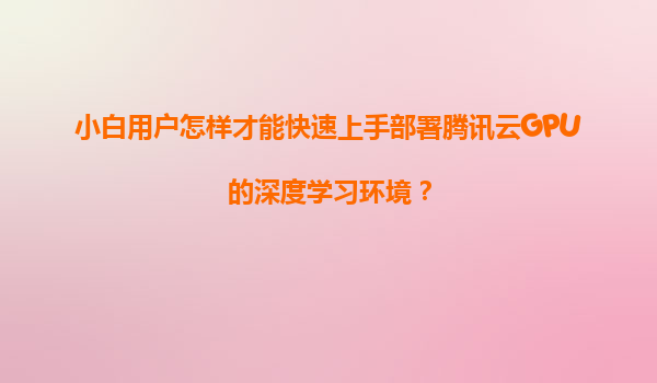 小白用户如何快速上手部署腾讯云GPU深度学习环境?