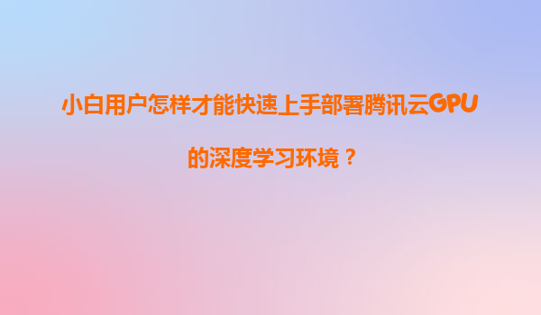 小白用户如何快速上手部署腾讯云GPU深度学习环境?