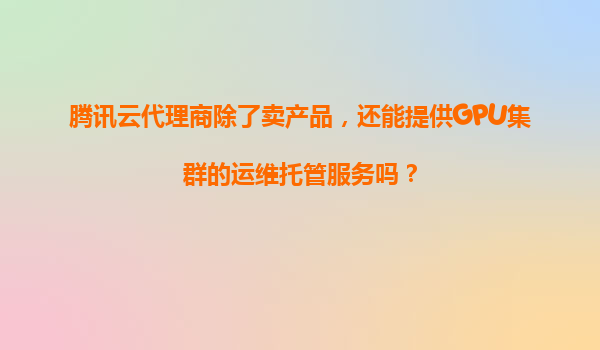 腾讯云代理商除了销售产品,还能提供GPU集群的运维托管服务吗?