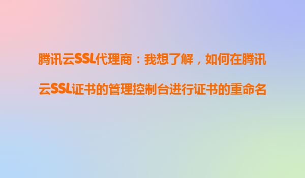 腾讯云SSL代理商指南:证书重命名与分类管理详解 一、腾讯云SSL证书服务的核心优势 作为国内领先的云服务提供商,腾讯云SSL证书服务凭借以下优势成为企业安全建设的首选: 全球可信