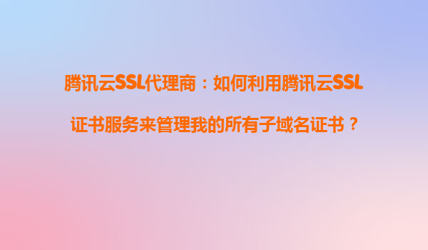腾讯云SSL代理商:如何利用腾讯云SSL证书服务来管理所有子域名证书