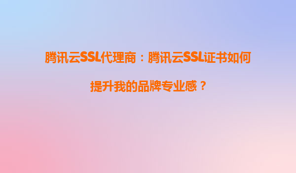 腾讯云SSL代理商:腾讯云SSL证书如何提升我的品牌专业感?