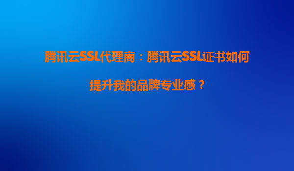 腾讯云SSL代理商:腾讯云SSL证书如何提升我的品牌专业感?
