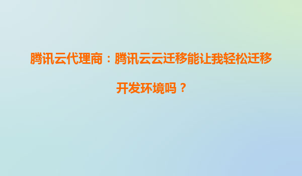 上饶腾讯云代理商:腾讯云云迁移能让我轻松迁移开发环境吗?
