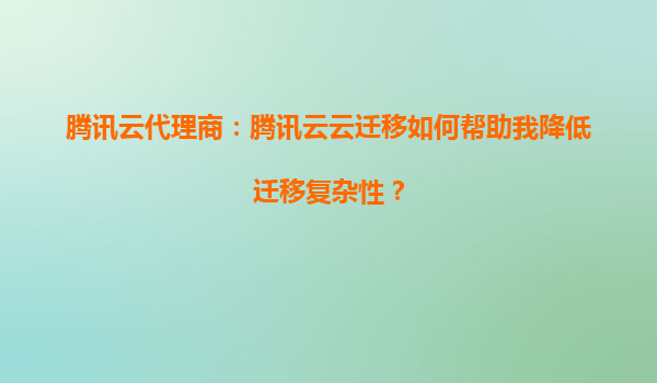腾讯云代理商:腾讯云云迁移如何帮助我降低迁移复杂性?