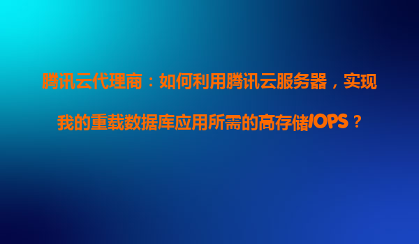 上饶腾讯云代理商:如何利用腾讯云服务器,实现我的重载数据库应用所需的高存储IOPS?