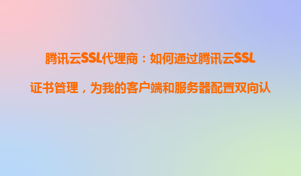 上饶腾讯云SSL代理商:如何通过腾讯云SSL证书管理,为我的客户端和服务器配置双向认证的安全通信?