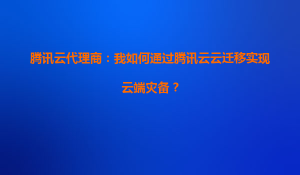 腾讯云代理商:我如何通过腾讯云云迁移实现云端灾备?