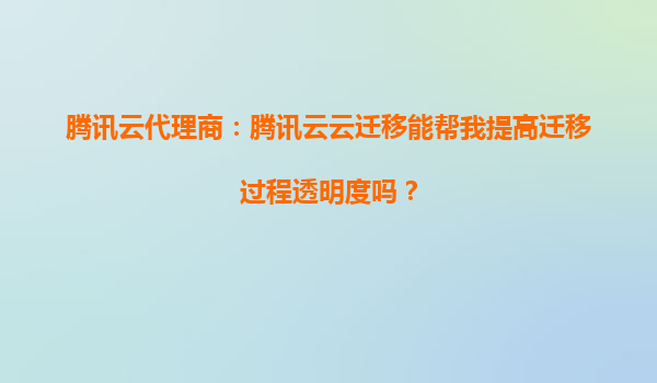 腾讯云代理商:腾讯云云迁移如何提升迁移过程的透明度?