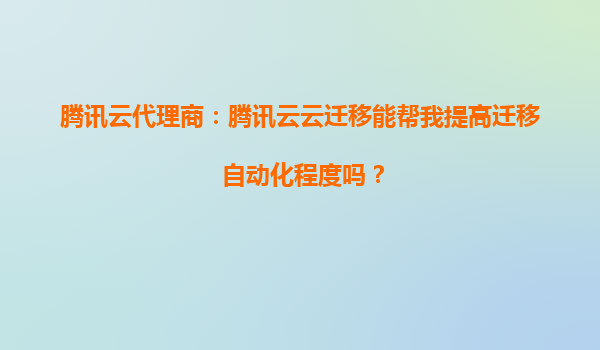 腾讯云代理商:腾讯云云迁移能帮我提高迁移自动化程度吗?