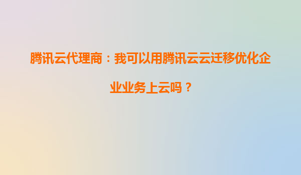 腾讯云代理商:我可以用腾讯云云迁移优化企业业务上云吗?