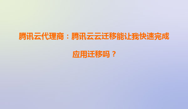 威海腾讯云代理商:腾讯云云迁移能让我快速完成应用迁移吗?