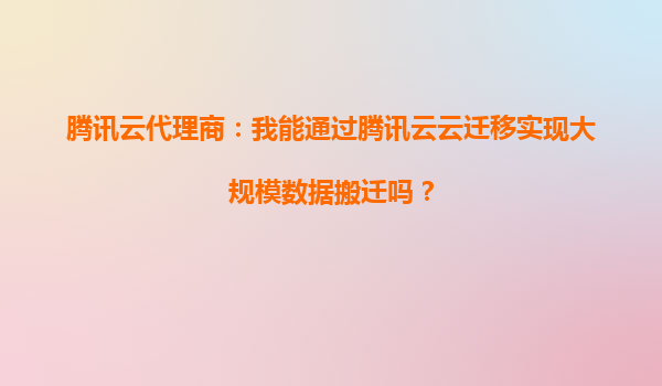 腾讯云代理商:我能通过腾讯云云迁移实现大规模数据搬迁吗?