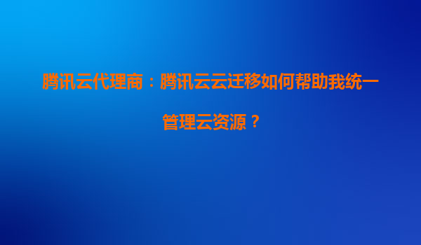腾讯云代理商:腾讯云云迁移如何帮助我统一管理云资源?