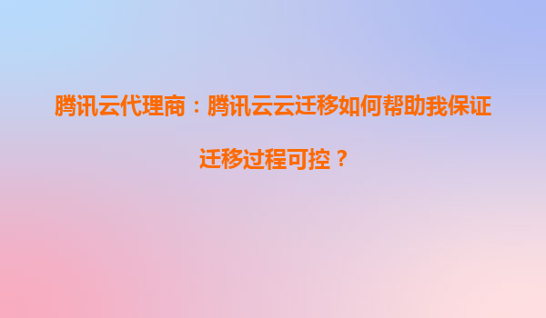 腾讯云代理商:腾讯云云迁移如何帮助我保证迁移过程可控?