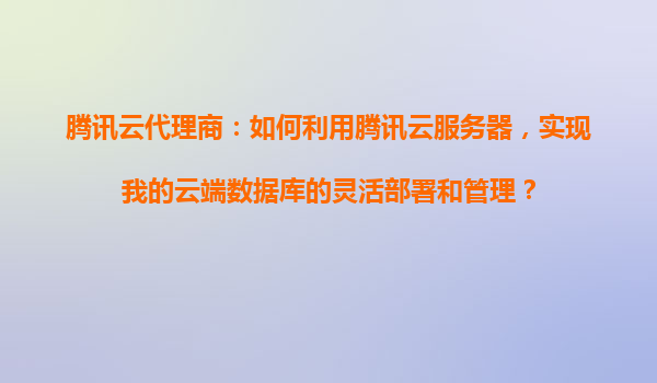 腾讯云代理商:如何利用腾讯云服务器,实现云端数据库的灵活部署和管理