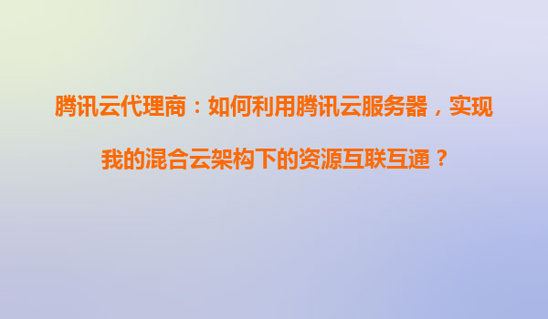 威海腾讯云代理商:如何利用腾讯云服务器,实现我的混合云架构下的资源互联互通?