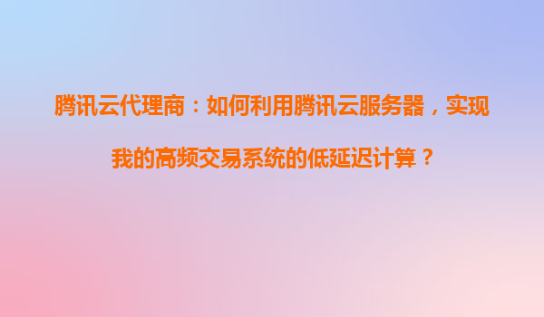 腾讯云代理商:如何利用腾讯云服务器,实现高频交易系统的低延迟计算?