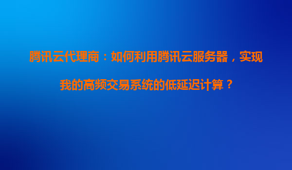 腾讯云代理商:如何利用腾讯云服务器,实现高频交易系统的低延迟计算?
