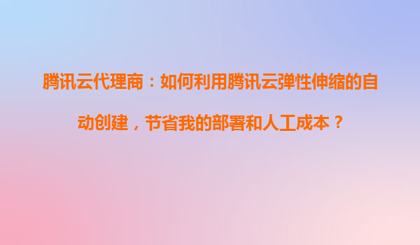 腾讯云代理商:如何利用腾讯云弹性伸缩的自动创建,节省我的部署和人工成本?