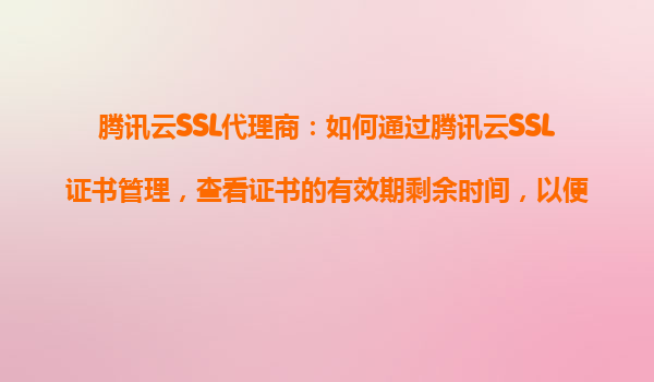 新余腾讯云SSL代理商:如何通过腾讯云SSL证书管理,查看证书的有效期剩余时间,以便提前规划?
