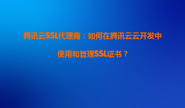 腾讯云SSL代理商:如何在腾讯云云开发中使用和管理SSL证书?