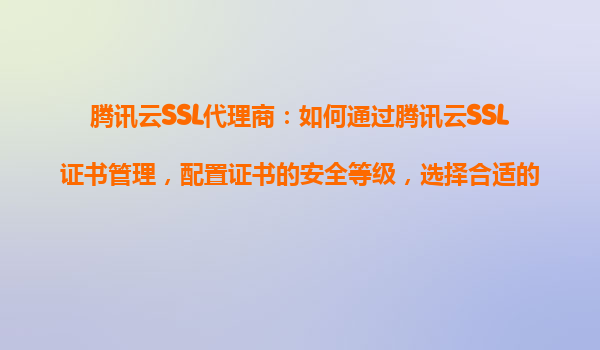 腾讯云SSL代理商:如何通过腾讯云SSL证书管理,配置证书的安全等级,选择合适的加密协议?