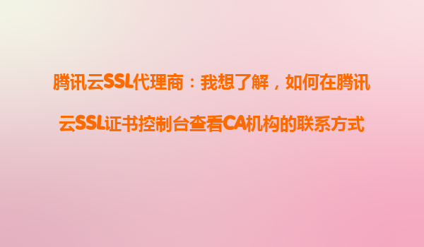 肇庆腾讯云SSL代理商:我想了解,如何在腾讯云SSL证书控制台查看CA机构的联系方式,以进行紧急沟通?